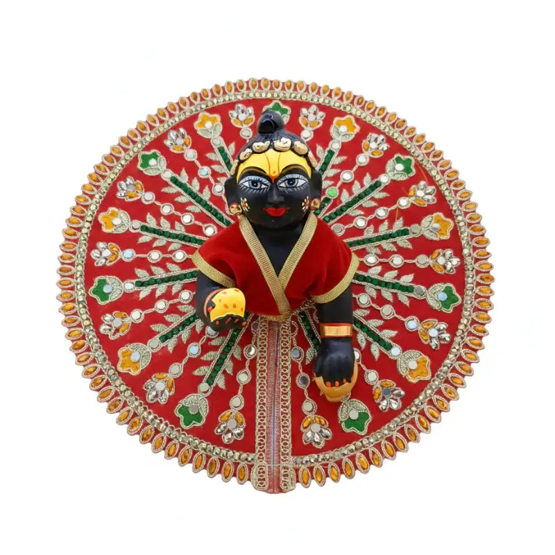 Laddu Gopal Velvet Dress – New, Heavy Work, Washable, 0-6 No.